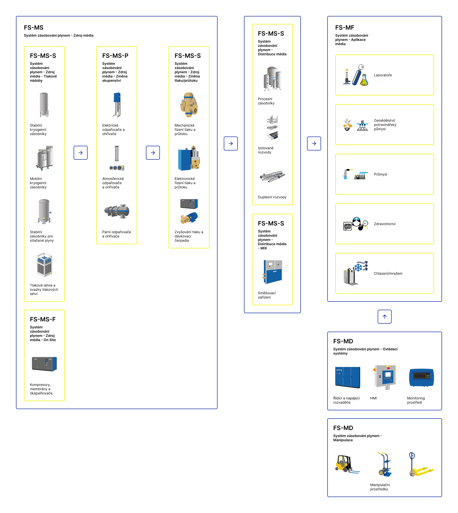 Dodáváme kompletní technologická řešení pro zásobování, distribuci a regulaci technických i medicinálních plynů. Naše systémy jsou určeny pro průmysl, zdravotnictví, laboratoře, potravinářské a zemědělské provozy, chladicí a mrazicí technologie. Zajišťujeme návrh, dodávku, instalaci i servis všech zařízení včetně revizí, tlakového testování a uvedení do provozu.